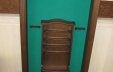 Эта напольная полка изготавливается под бильярдный стол "Динарис-Спортивный" (но так же может быть сделана в другом стиле бильярдного стола, кроме "Граф","Император", "Аквитания") - соответственно отделке и декору этого стола. Имеет место под подвес 4 киёв, ещё по 2 кия с каждой стороны стоит, опираясь пятками на нижнюю часть полки. Так же в полке есть место для треугольника и шаров, В нижней части киевницы находится небольшой шкафчик. Изготовлена из ясеня, задняя стенка полки обтянута бильярдным сукном. Высота - 2100мм, ширина - 975мм, глубина - 230мм.