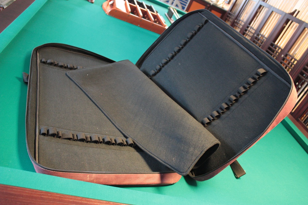 Сумка предназначена для транспортировки 20-ти двухсоставных киёв. Чехол оснащен отделениями под турняки и шафты, регулируемым наплечным. Отделка - кожезаменитель.