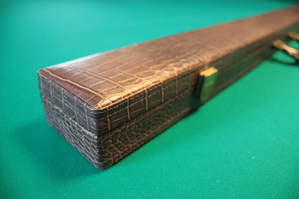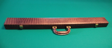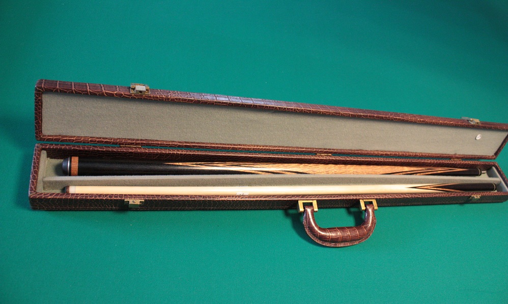 Кейс  под один разборный кий для русского бильярда . Корпус настоящего кейса выполняется из плотного твердого материала. Внутреннее пространство кейса состоит из нескольких отделений. Это необходимо для того, чтобы раздельно хранить части кия  и прочие полезные мелочи: ваш мелок, перчатку. Изнутри кейс отделывается мягкой бархатистой тканью cерого цвета, в которой ваш кий будет себя чувствовать максимально комфортно и безопасно.