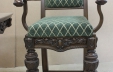 Стул изготовлен из твёрдой породы дерева - ясеня и служит дополнением к бильярдному и журнальному столам модели "Граф" или "Аквитания". Имеет удобные подлокотники с выемкой для кия. Высота посадочного места очень удобна для просмотра бильярдной игры. Размеры: высота - 1230мм, ширина - 670мм, глубина - 550мм | ||