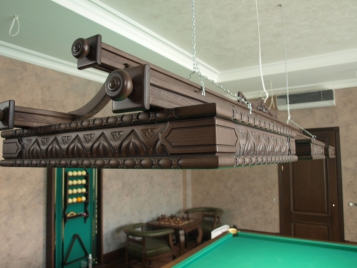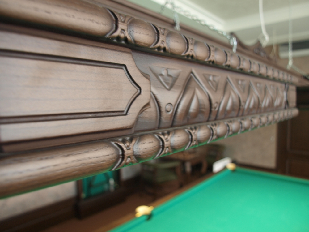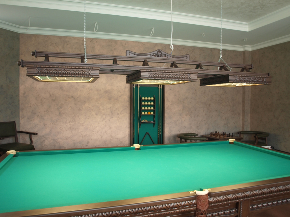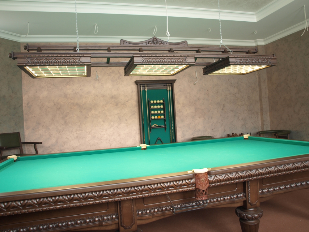 Производство ДИНАРИС Светильники разработаны с учётом всех требований к осветительному оборудованию и на сегодняшний день является лучшим среди всего освещения для бильярда. Данная модель специально разработана под эксклюзивные бильярдные столы. При игре в бильярд светильники имеют особое значение. Помимо того, что они должны равномерно освещать бильярдный стол, есть еще несколько моментов, которые следует учитывать при выборе светильника для бильярда. Бильярдные светильники вешают на высоте 0,8 – 1м от игрового поля. Если выше – свет будет бить в глаза, если ниже – не будут просвечиваться углы бильярдного стола. Очень важно правильно подобрать размер светильника, это на прямую зависит от размера бильярдного стола: На бильярдный стол 7f, 8f , 9f и 10f – 2х-секционный светильник На бильярдный стол 11f и12f – 3х-секционный светильник На бильярдный стол 12f СНУКЕР – 4х-секционный светильник