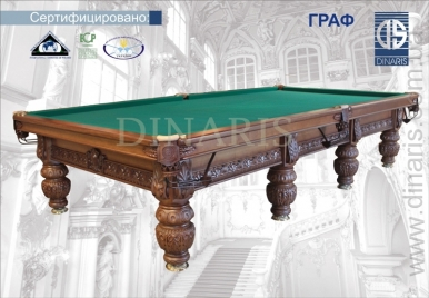 Эксклюзивная модель представляет собой новую вершину мастерства от творцов бильярдных столов ТМ "DINARIS". Дизайн стола выполнен в стиле ХХ века - воплощение благородства, роскоши и гармонии. Орнамент и резьба, выполненная мастерами вручную, несомненно, дополняют и подчеркивают изысканность и индивидуальность этой модели. Бильярдный стол «Граф» станет украшением любого дома или заведения VIP-класса. Размер - от 7-ми до 12-ти футов.