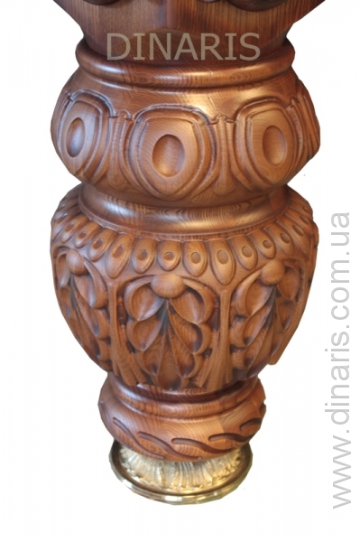 наборные, фрезерованные полностью резные с фрезерованными резными фигурными накладками опираются на резной деревянный подпятник, предусмотрена регулировка уровня плиты