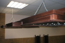 Предназначен для клубного и домашнего использования. Внешний вид стола выполнен в классическом стиле с мощными элементами каркаса. Ноги бильярдного стола увеличенного размера, для увеличения веса стола и его устойчивости. Размер - от 7-ми до 12-ти футов.