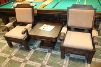 Шасси стола изготовленно из массива натуральной, тщательно отобранной, высококачественной древесины высшего сорта ольхи или ясеня по выбору заказчика.Борта - подлокотник и стойка борта - специально отобранный и поготовленный ясень, подрезинник - липа